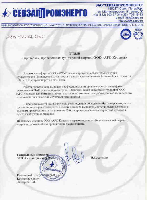 ООО «АРС-Консалт» прошло проверки внешнего контроля качества, что подтверждается: