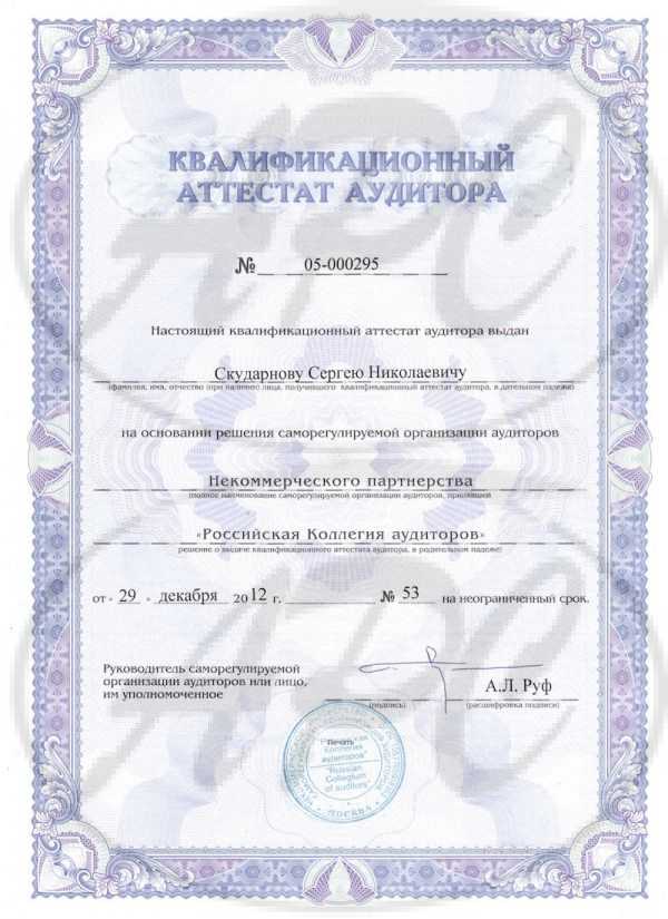 Руководитель (Генеральный директор) имеет квалификационный аттестат аудитора нового образца № 05-000295 от 29.12.2012.