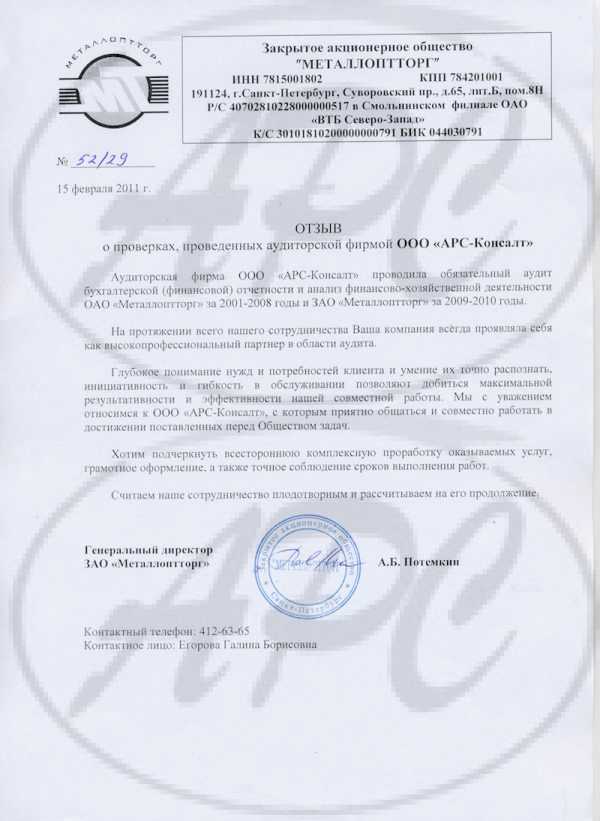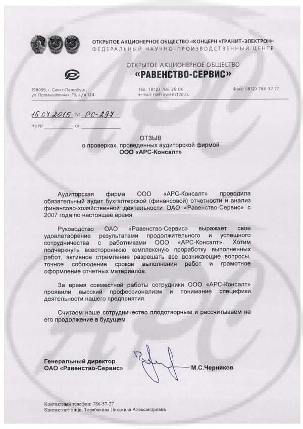 За время деятельности ООО “АРС-Консалт” не было случаев применения санкций за неквалифицированное проведение аудиторских проверок со стороны Министерства финансов Российской Федерации и не было фактов взысканий по искам о неквалифицированном проведении аудиторских проверок, наложенных на основании решения суда.
